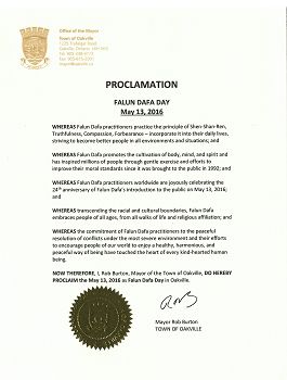 安省奥克维尔(Oakville)市长宣布法轮大法日