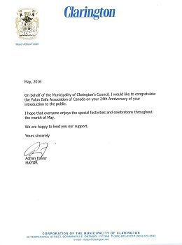 你们坚守人权与人类尊严的和平努力,对我们社区的文化活力是一种持续的贡献。我怀着巨大的钦佩,对多伦多法轮大法学会及大法修炼者在坚持信仰、尊重他人及和平理性等方面表示祝贺。