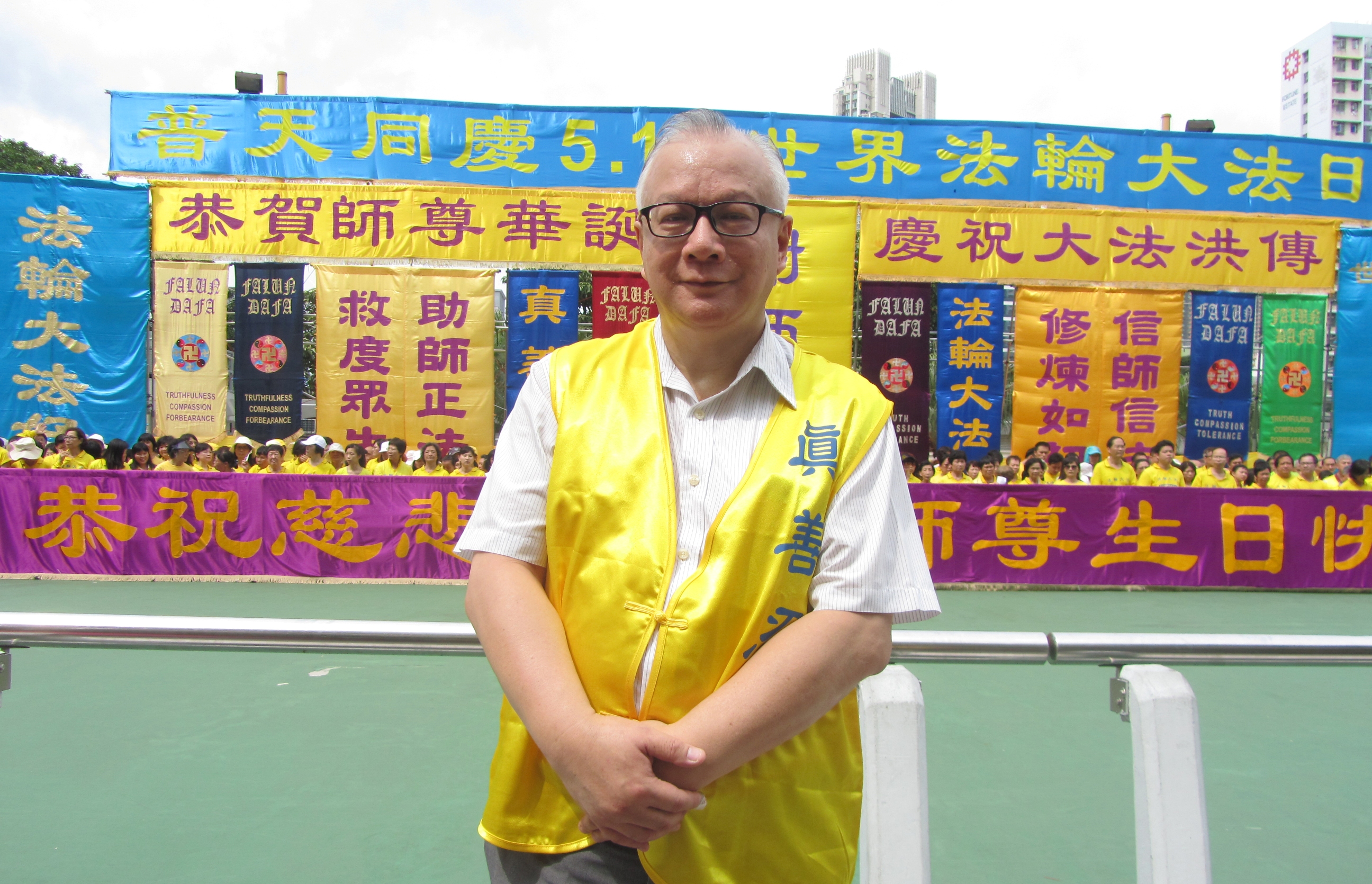 图5:香港法轮佛学会发言人简鸿章表示:在未来的日子里,“世界法轮大法日”将是人类最光辉、最神圣的节日。
