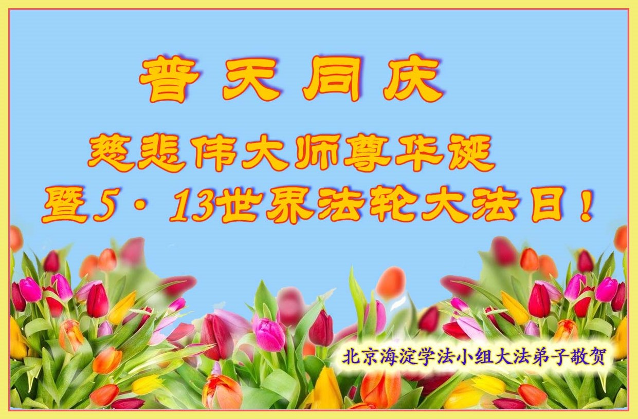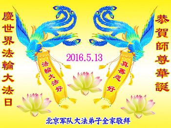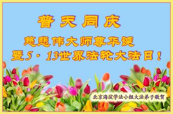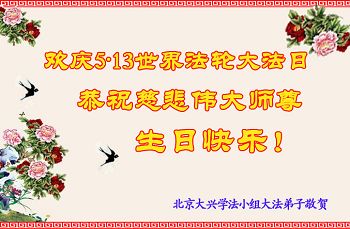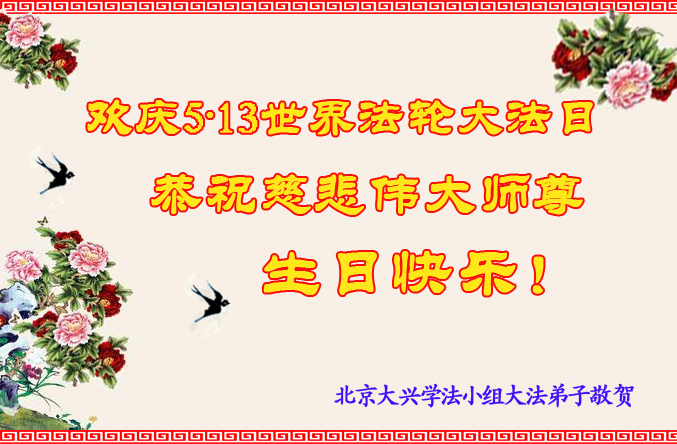 北京某空军大院及周边大法弟子恭祝师尊生日快乐!并热烈庆祝5.13世界法轮大法日!
