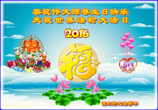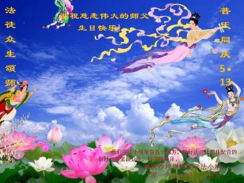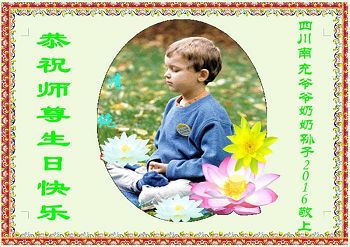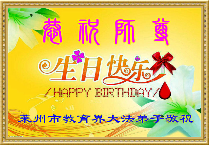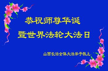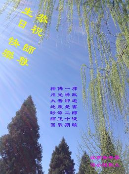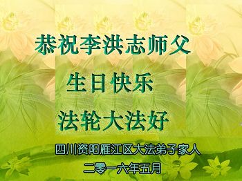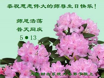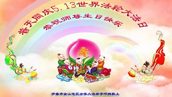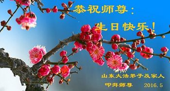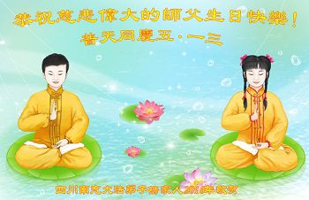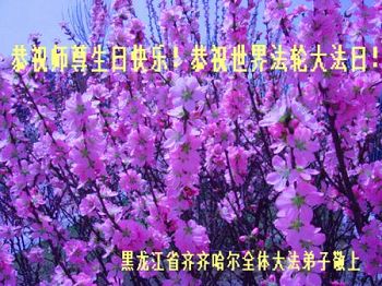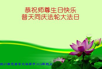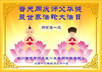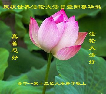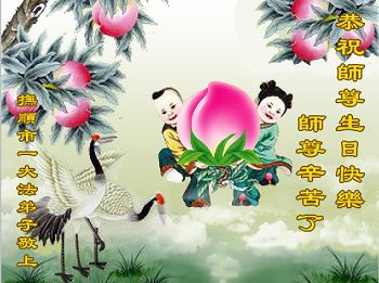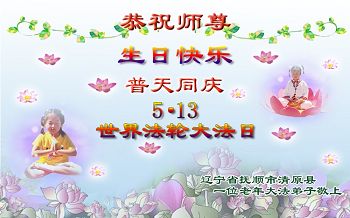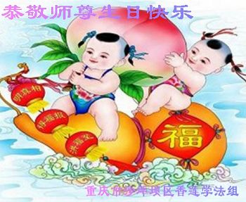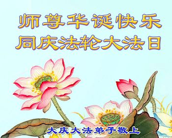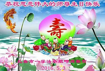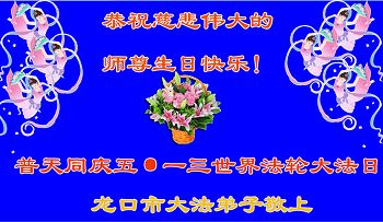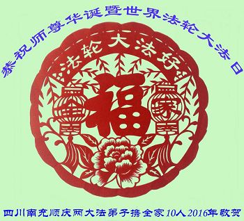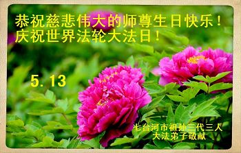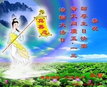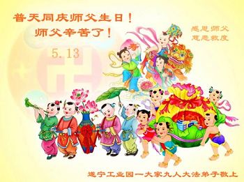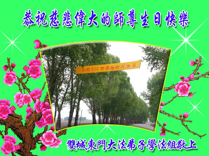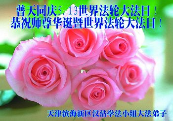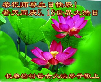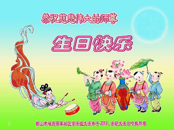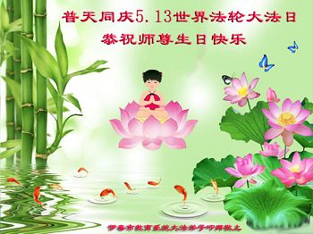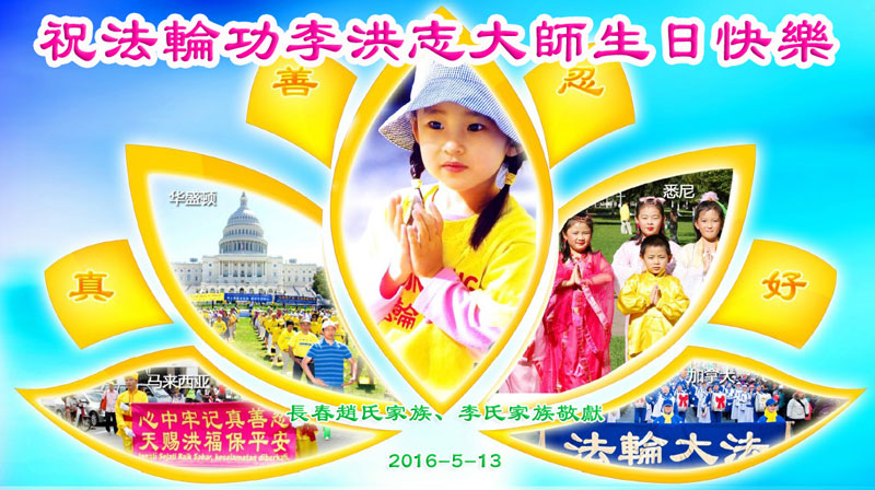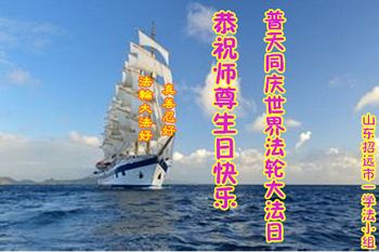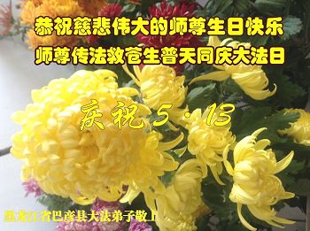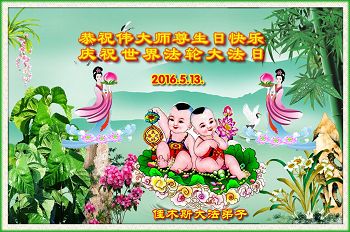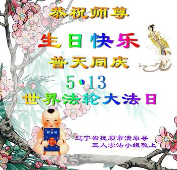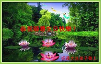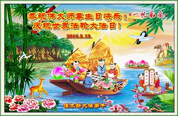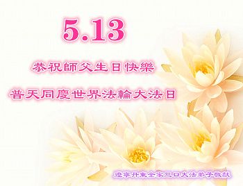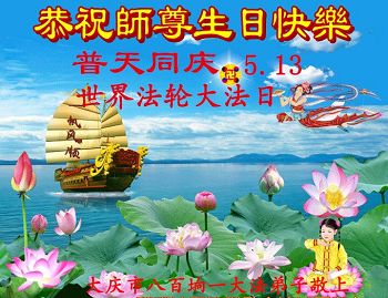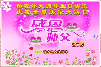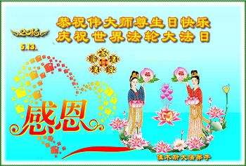 恭贺第十七届世界法轮大法日!恭祝李老师六十五华诞!祝李老师生日快乐!我们全家叩谢李老师赐予的福份!希望法轮功真相能尽快大白于天下,我们满怀喜悦迎接人类新纪元的到来!