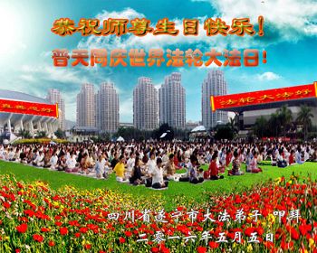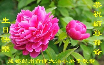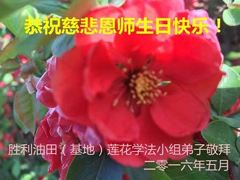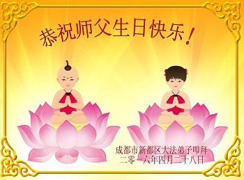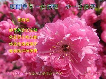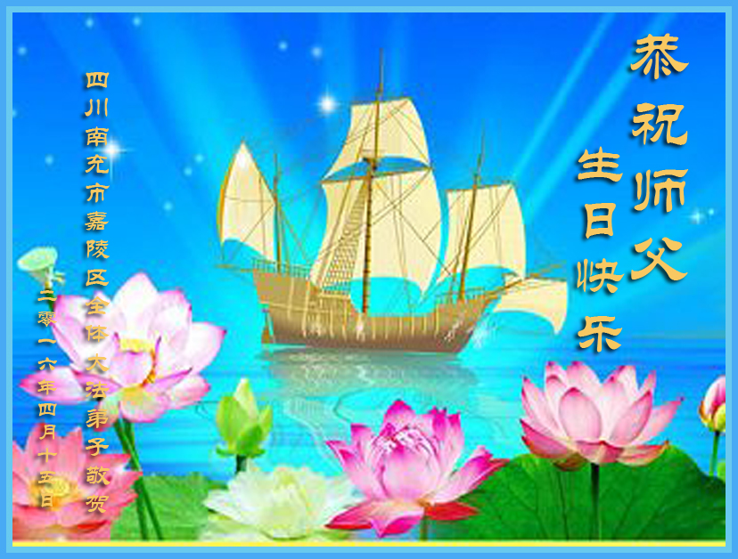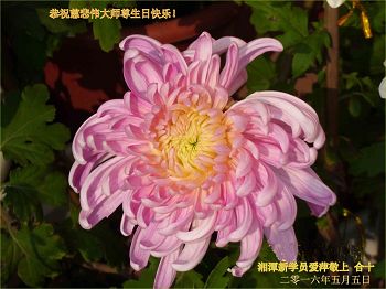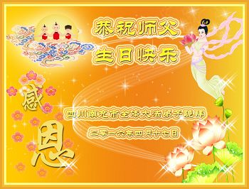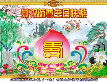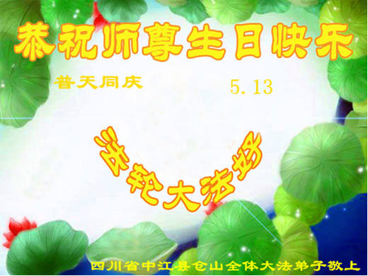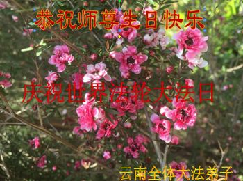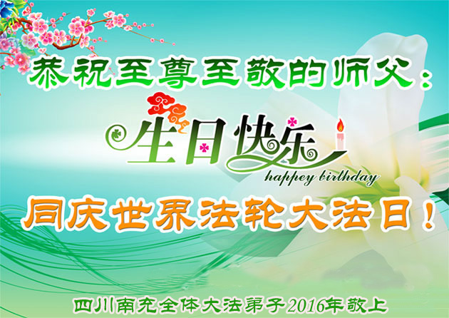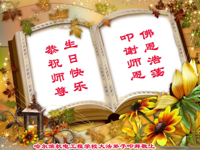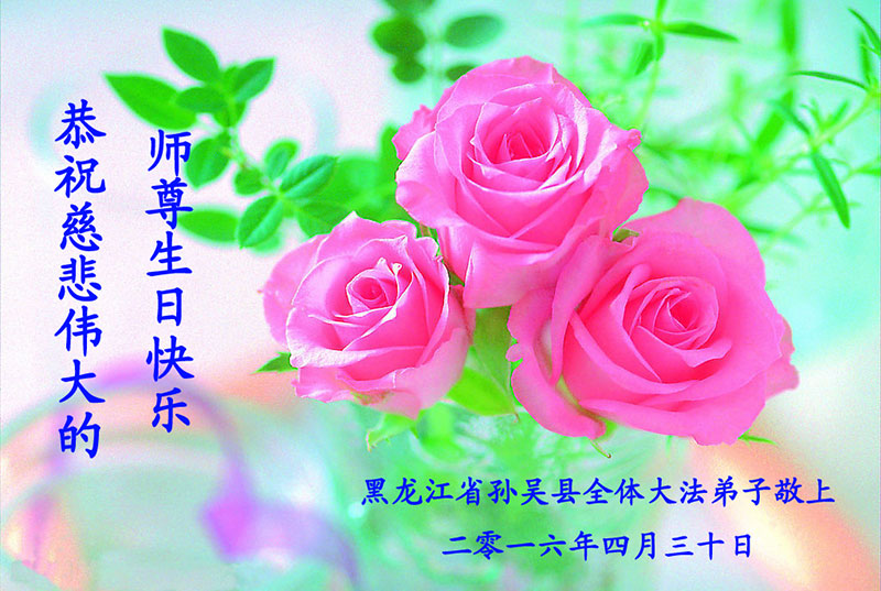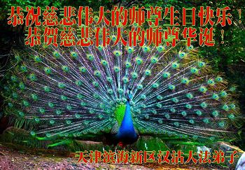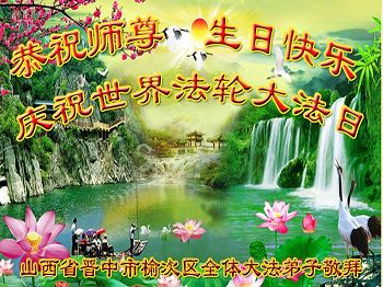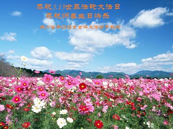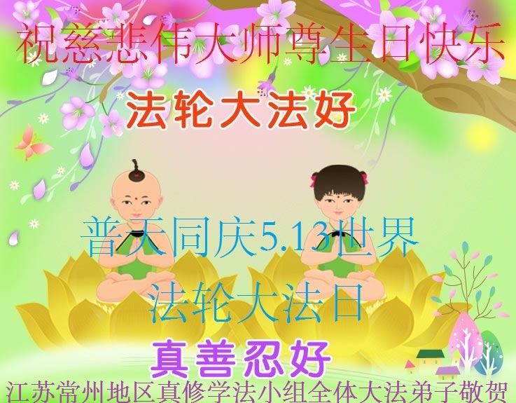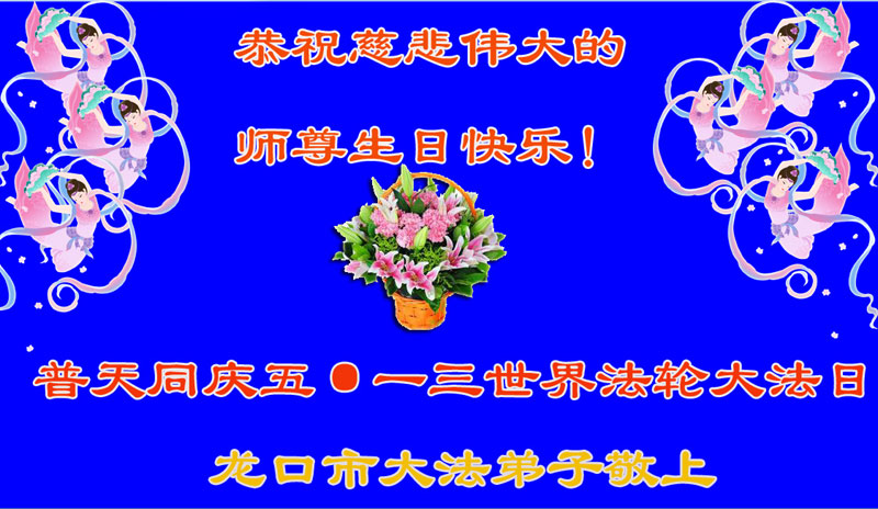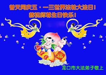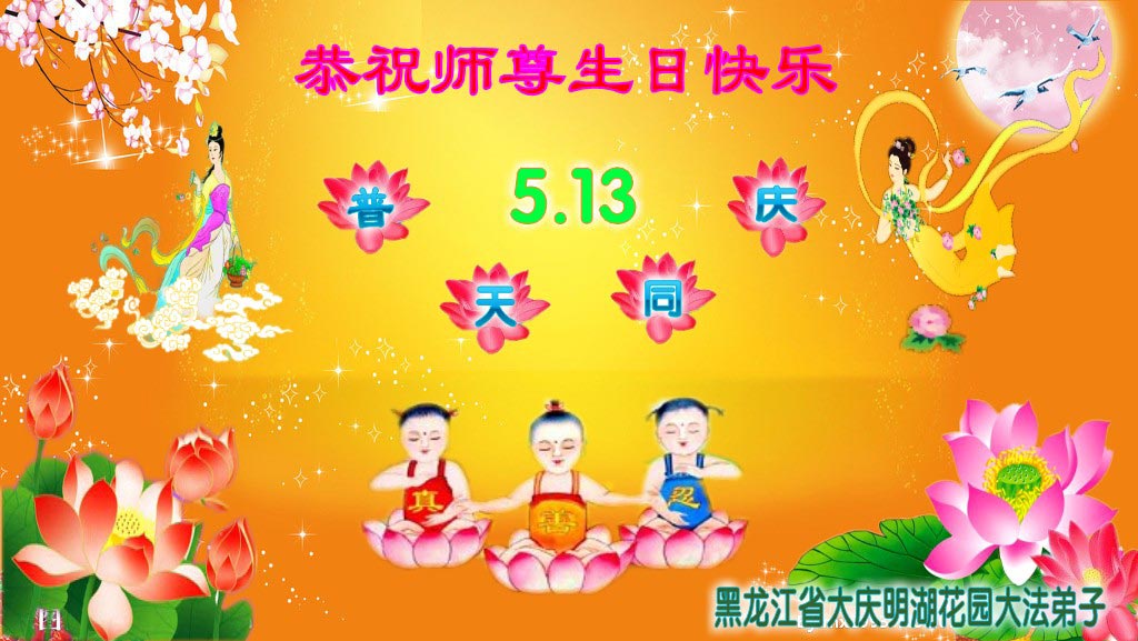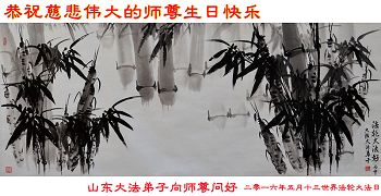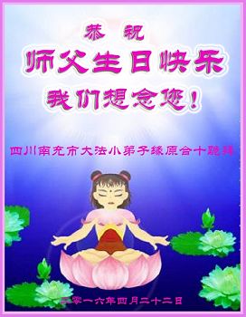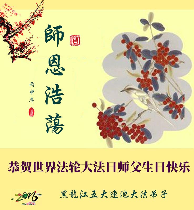 恭贺第十七届世界法轮大法日!恭祝李老师六十五华诞!祝李老师生日快乐!我们全家叩谢李老师赐予的福份!希望法轮功真相能尽快大白于天下,我们满怀喜悦迎接人类新纪元的到来!