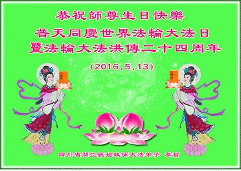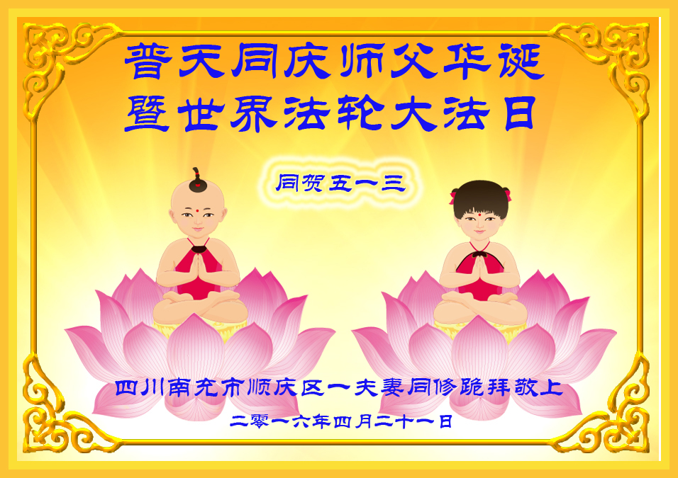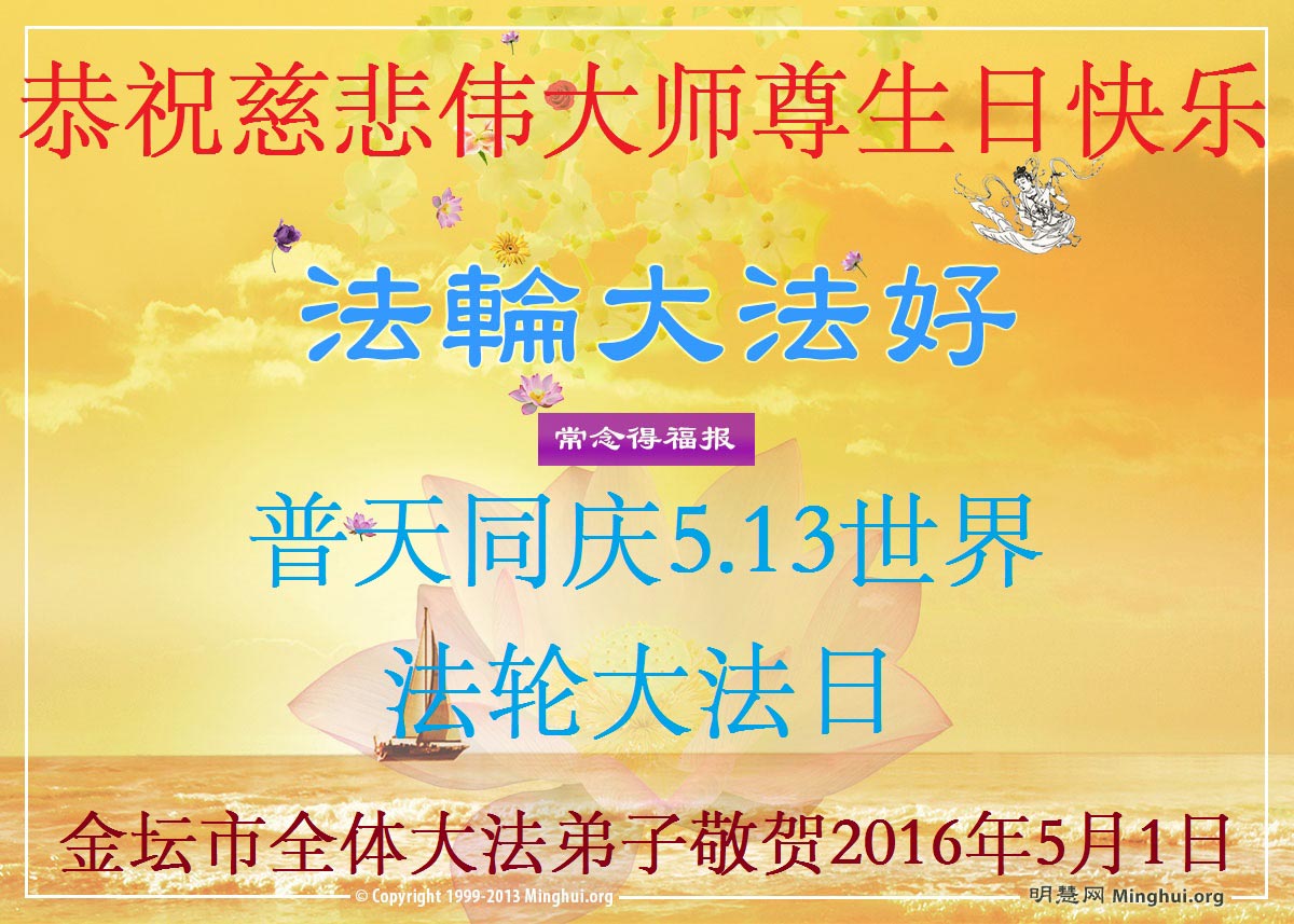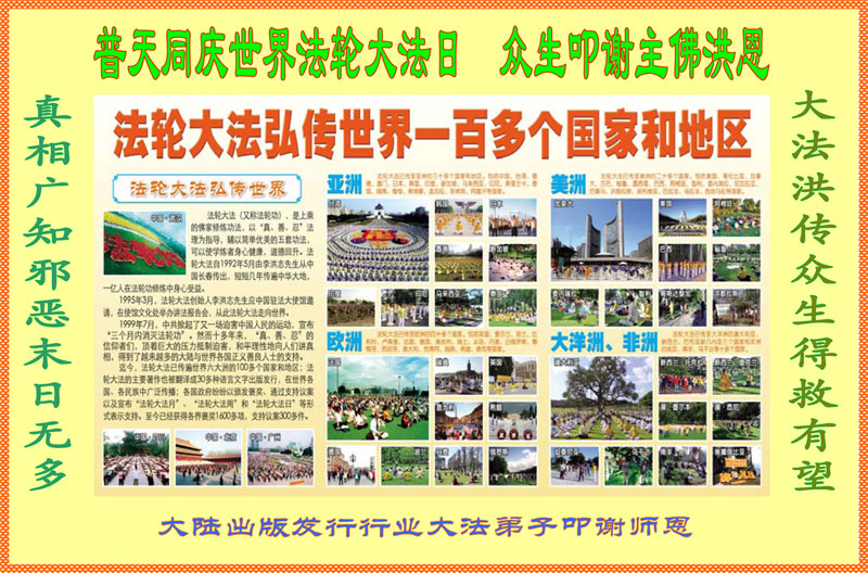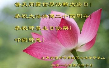 <英文版: http://en.minghui.org/html/articles/2016/5/11/156776.html>大陆百姓恭贺世界法轮大法日暨师尊华诞(11条)