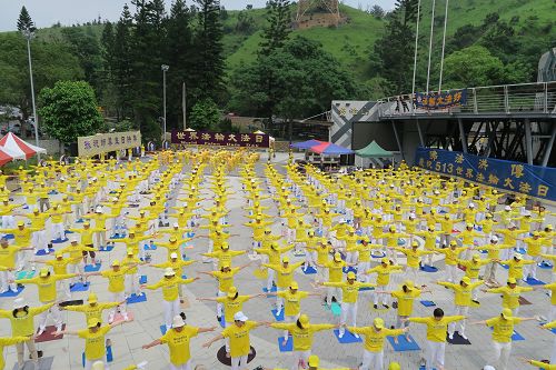 【明慧网二零一六年五月十日】(明慧记者夏昀台湾台中采访报道)二零一六年五月十三日是第十七届世界法轮大法日,也是法轮功创始人李洪志先生六十五岁华诞。台湾中部法轮功学员于五月八日在台中市清水区鳌峰山公园举办了庆祝活动,以功法演示、音乐、舞蹈、图片展等,庆贺法轮功洪传二十四周年,并恭祝师尊生日快乐。