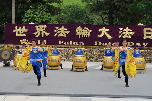 图2-5:台湾中部法轮功学员以功法演示、音乐、舞蹈庆祝法轮功洪传二十四周年,与民众分享喜悦。