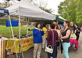 五月七日和八日,在纽约首府奥伯尼举办的第68届郁金香节上,法轮功学员设立了展位向人们介绍法轮功并揭露中共对法轮功的迫害。