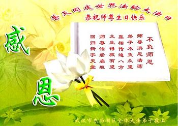 湖北武汉市东西湖区全体大法弟子恭祝师尊生日快乐!湖北省荆州市公安县全体大法小弟子恭祝师父生日快乐!