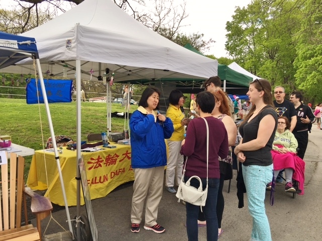 ![]() 图1-3:纽约州府奥伯尼法轮功学员在第六十八届郁金香节上设立展位,向民众介绍法轮功。许多游人驻足了解真相。 |