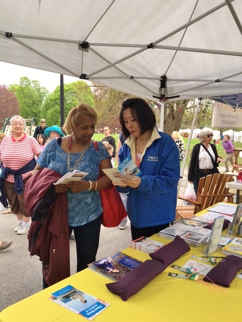 一位摊主是个白人女士,本来绔绔的样子,一听大法被迫害、学员被活摘器官的事,立刻动容,义不容辞拿起声援“起诉迫害元凶江泽民”的征签板签名,说: “我绝对支持你们!”