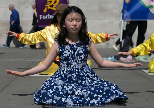 ![]() 图2-5:庆祝“五一三”世界法轮大法日,英国法轮功学员在伦敦鸽子广场集体炼功,展示法轮大法的美好。 |