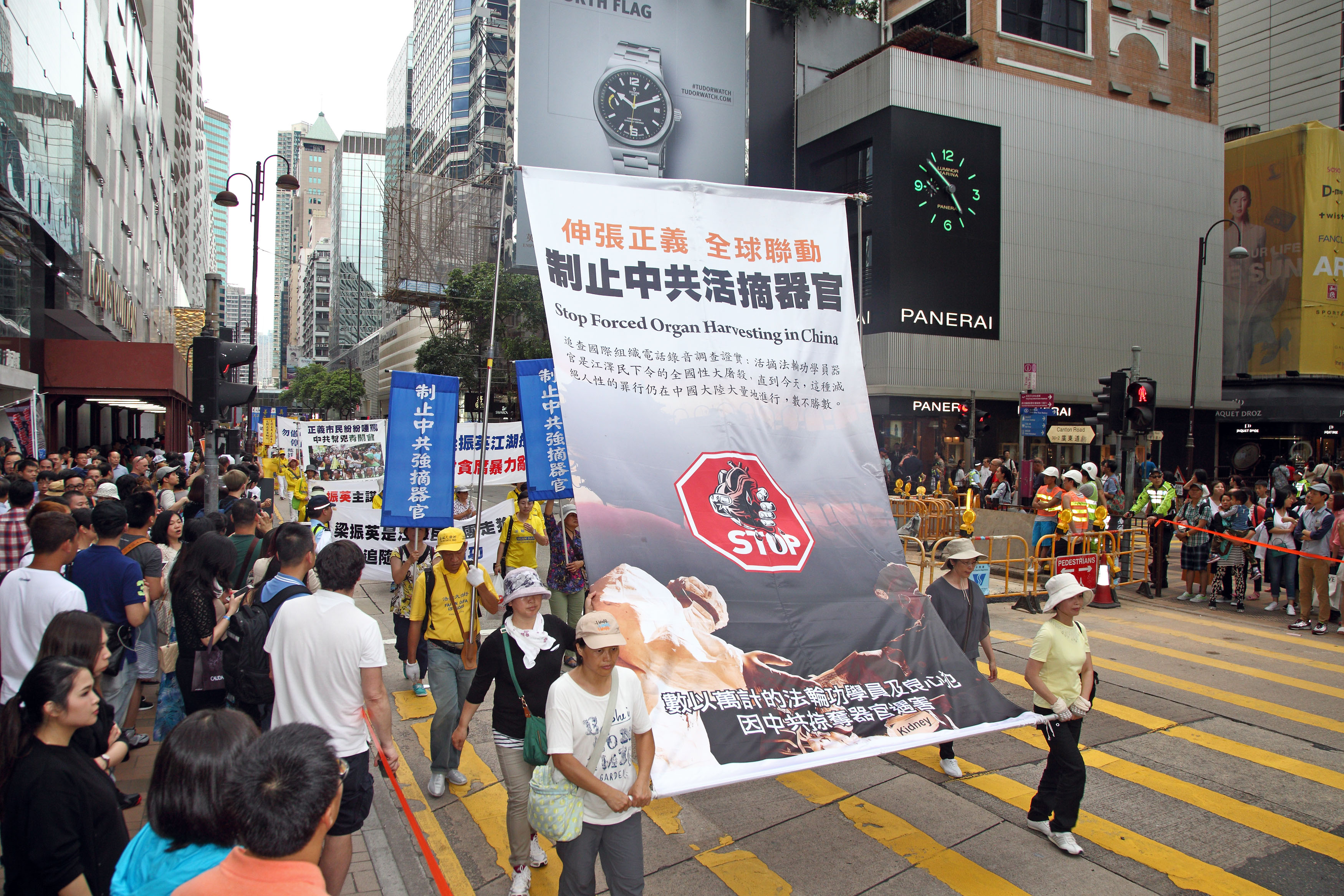 第二方阵“和平理性反迫害”,揭露中共迫害的真相以及善恶必报的天理,呼吁制止中共活摘器官、及中共黑帮祸港的恶行。