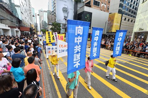 许多中国大陆游客在这次活动中了解了真相,不少人把握良机,请法轮功学员帮忙声明三退(退出中国共产党、团、队组织),获得美好未来的新生契机。也有些已在大陆声明过三退,到香港第一次看到法轮功游行,感到非常震撼与触动,有的表示很希望内地(中国大陆)也能有这么一天早早到来。