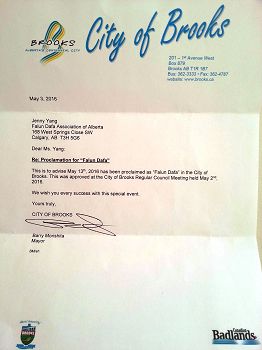 布鲁克斯(Brooks)市长巴里·森下(Barry Morishita)宣布“法轮大法日”: