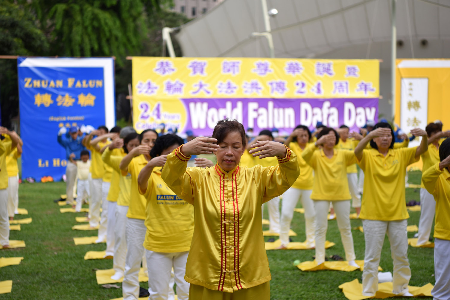 【明慧网二零一六年五月十二日】五月十三日是世界法轮大法日,新加坡法轮功学员于二零一六年五月九日在芳林公园集体炼功,并举办图文真相展和艺文表演活动等,恭祝李洪志师尊华诞,庆祝即将来临的世界法轮大法日,表达对师父的感恩,与民众分享喜悦。各族裔民众喜闻大法福音后,纷纷表示认同“真、善、忍”法理所承载的普世价值,支持法轮功反迫害。也有明真相的世人诚挚问候大法师父,“身体健康,万事如意!”