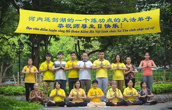 越南河内还剑河一炼功点大法弟子恭祝师尊生日快乐!马来西亚大法弟子恭祝师尊生日快乐!