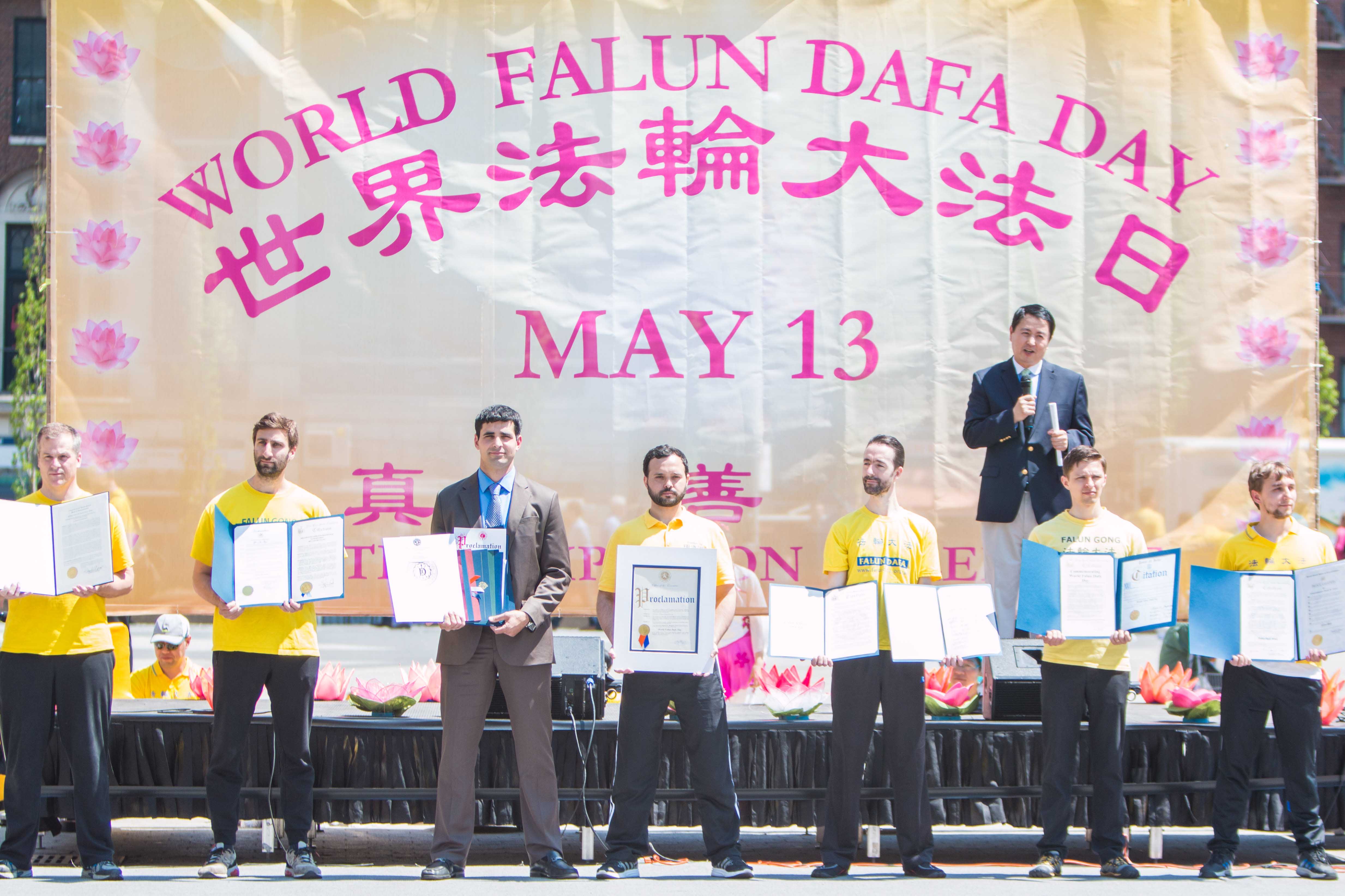 今年,纽约州包括联邦、州议员和各个城市的市长,共一百零二名各级官员发来贺词、贺信和褒奖庆祝世界法轮大法日。
