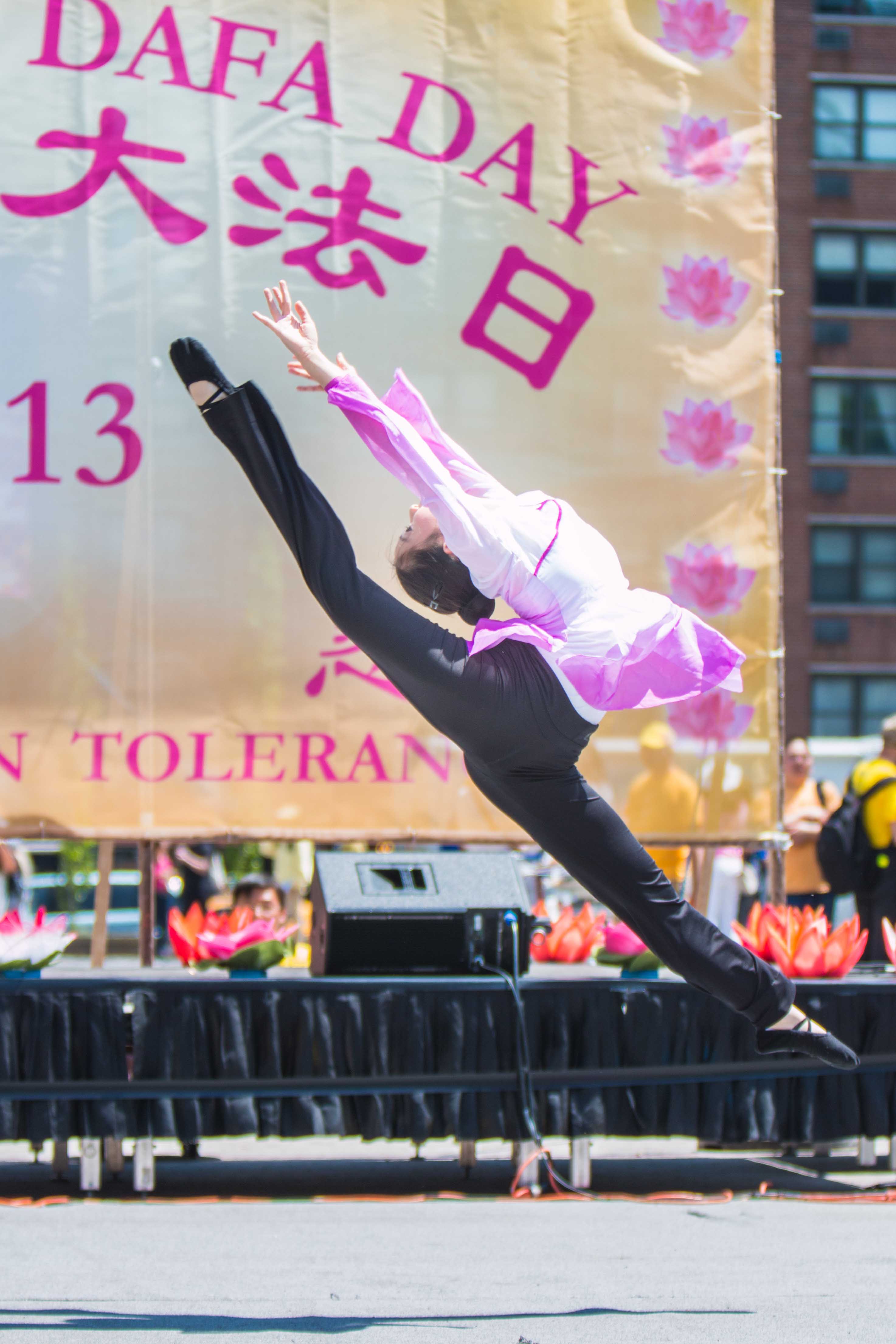 舞狮舞龙是一年一度法轮大法日庆祝活动中不可或缺的一部分,十几个年轻法轮功男学员将一条龙舞得如同活起来一样。今年演出中,他们更是三次不同时间上场,将气氛推向高潮。另外,几百人的集体炼功,天国乐团,器乐歌唱表演和舞蹈表演也吸引了大批民众驻足观看。法轮功学员们利用这种形式向民众展示修炼给他们的人生带来的美好,同时唤起人们对在中国发生的迫害的关注。