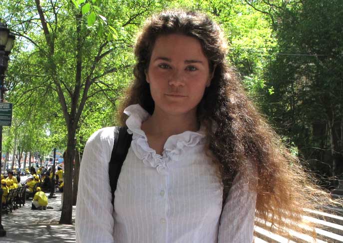 罗密说自己来纽约六年了,是学设计的,来纽约生活就是想了解纽约正在发生什么。听到法轮大法洪传世界一百多个国家,包括以色列,罗密她相信以色列人与法轮大法会联系到一起,因为以色列人向往平和安宁。