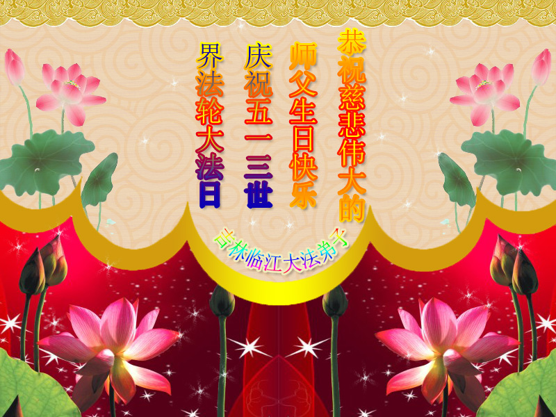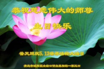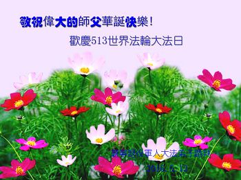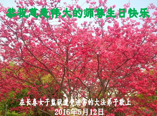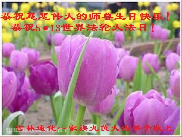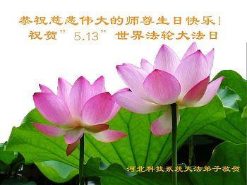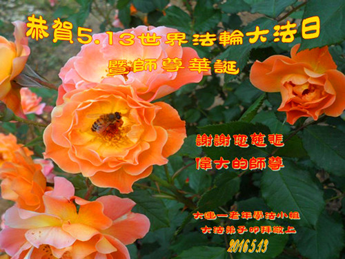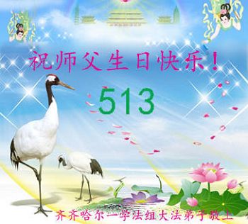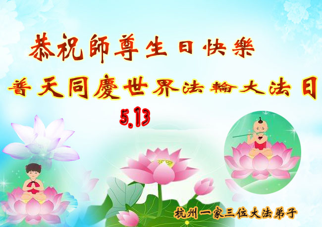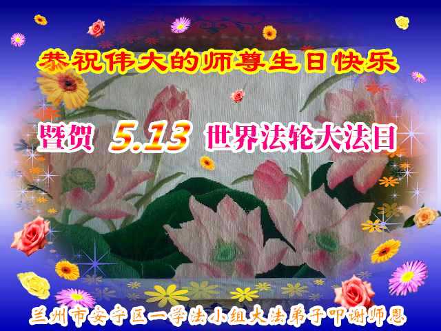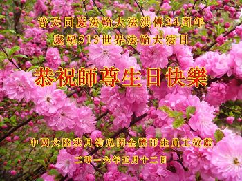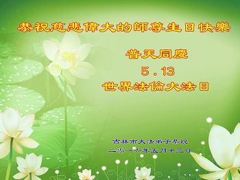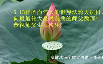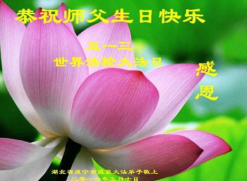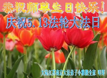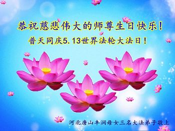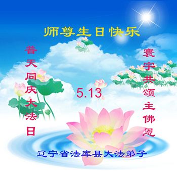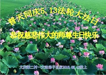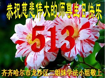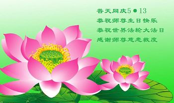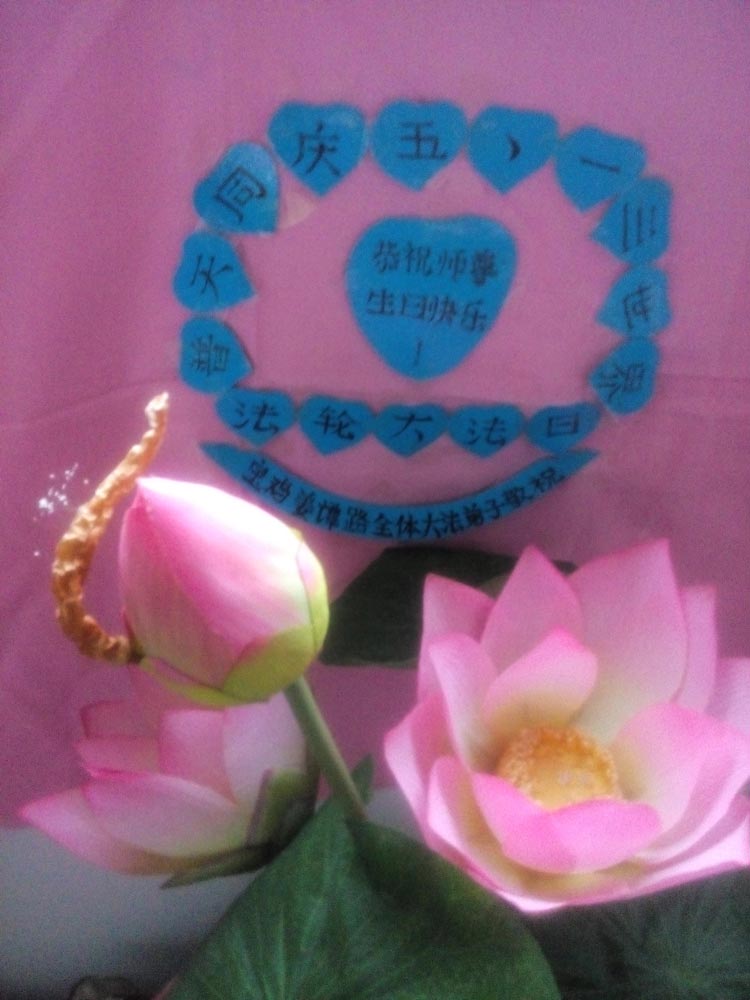 值此5.13“世界法轮大法日”来临之际,向法轮大法师父道一声:您辛苦了!祝您生日快乐!谢谢法轮大法及大法师父给了我母亲一个健康的身体和宽广的胸怀!也请您原谅我在这场迫害中做过的错事。