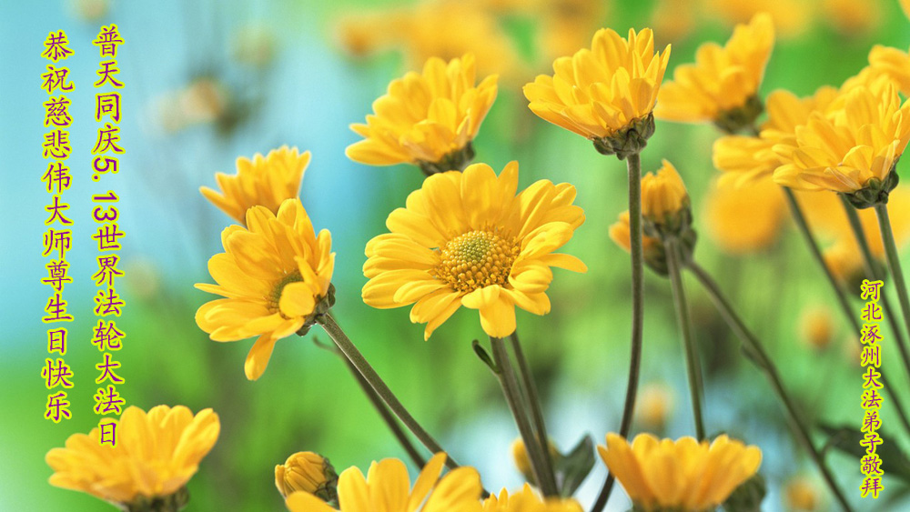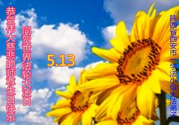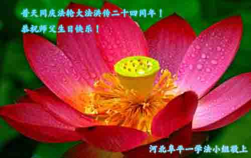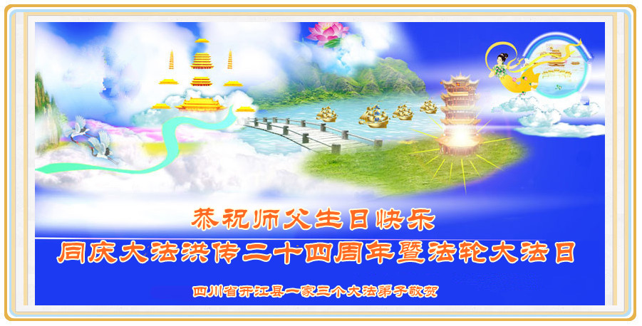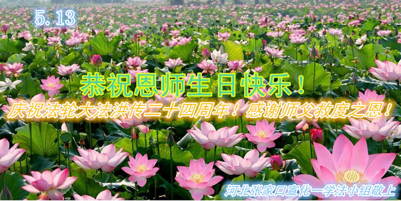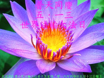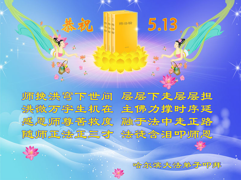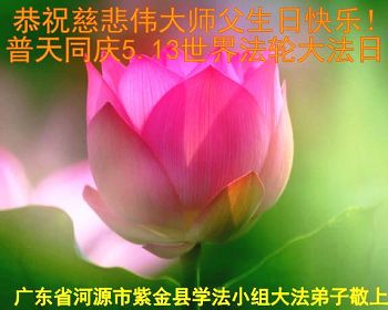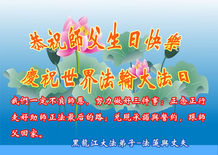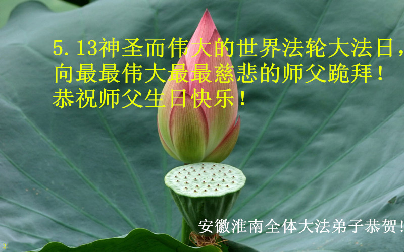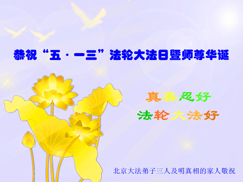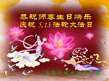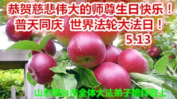 值此5.13“世界法轮大法日”来临之际,向法轮大法师父道一声:您辛苦了!祝您生日快乐!谢谢法轮大法及大法师父给了我母亲一个健康的身体和宽广的胸怀!也请您原谅我在这场迫害中做过的错事。