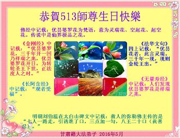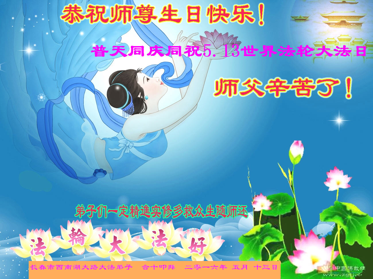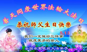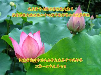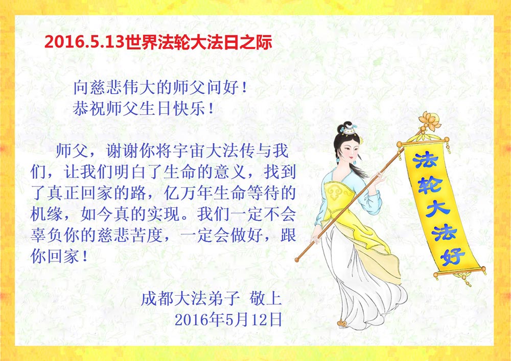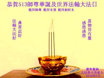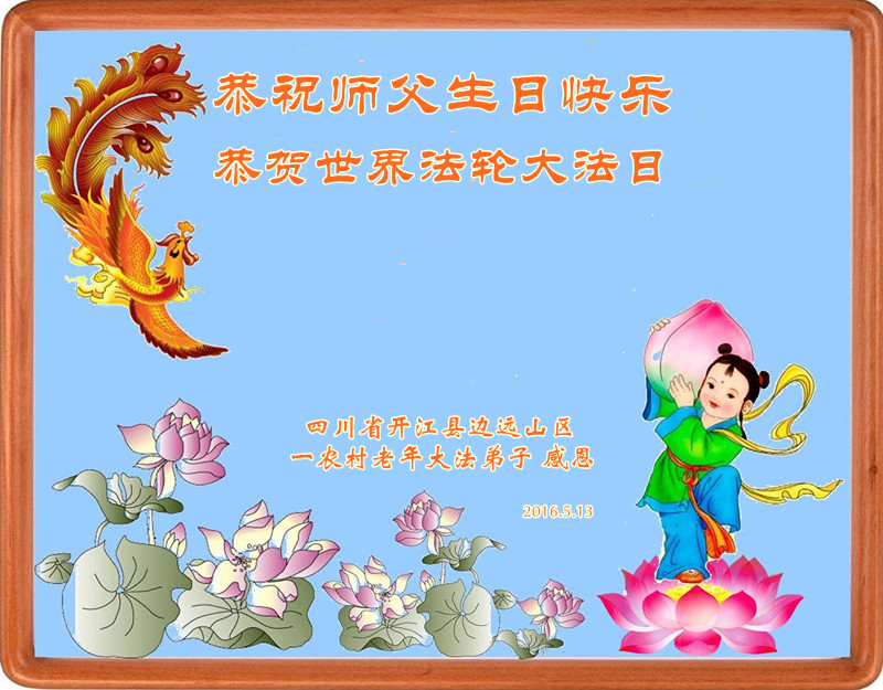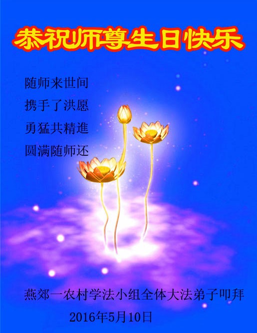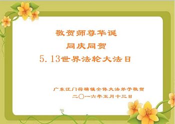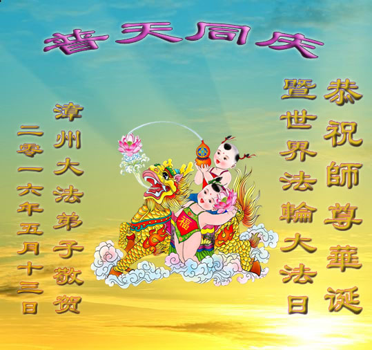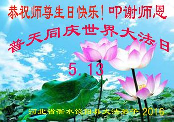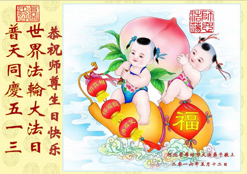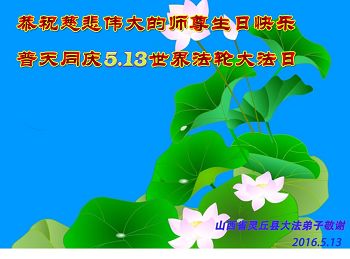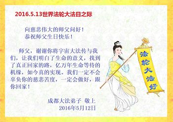 <英文版: http://en.minghui.org/html/articles/2016/5/15/157017.html>大陆百姓恭贺世界法轮大法日暨师尊华诞