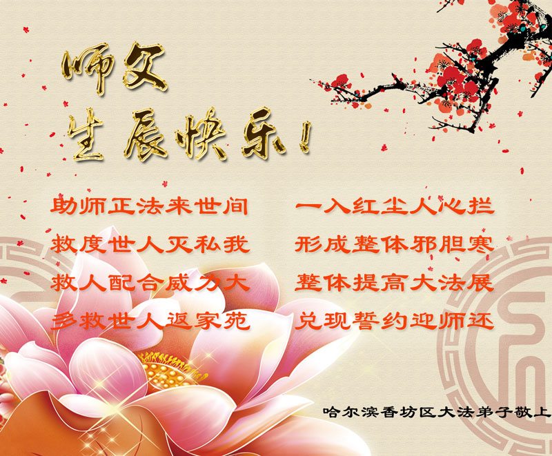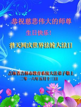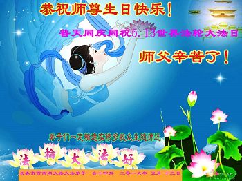 然而,我们身边明真相的世人在大法中受益的也比比皆是,他们内心深处那份虔诚的对大法的感恩与敬仰也一定期盼着在这普天同庆的日子里表达给师尊,恭祝师尊华诞。