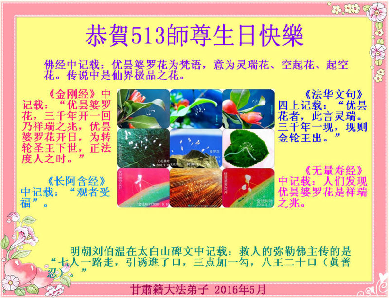 一年一度的五一三世界法轮大法日即将到来,用各种方式通过明慧网恭祝师尊华诞、恭祝世界法轮大法日,同时表达对师恩浩荡的感恩是我们每个大法弟子的心愿。