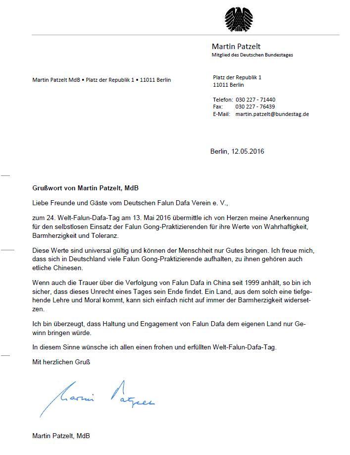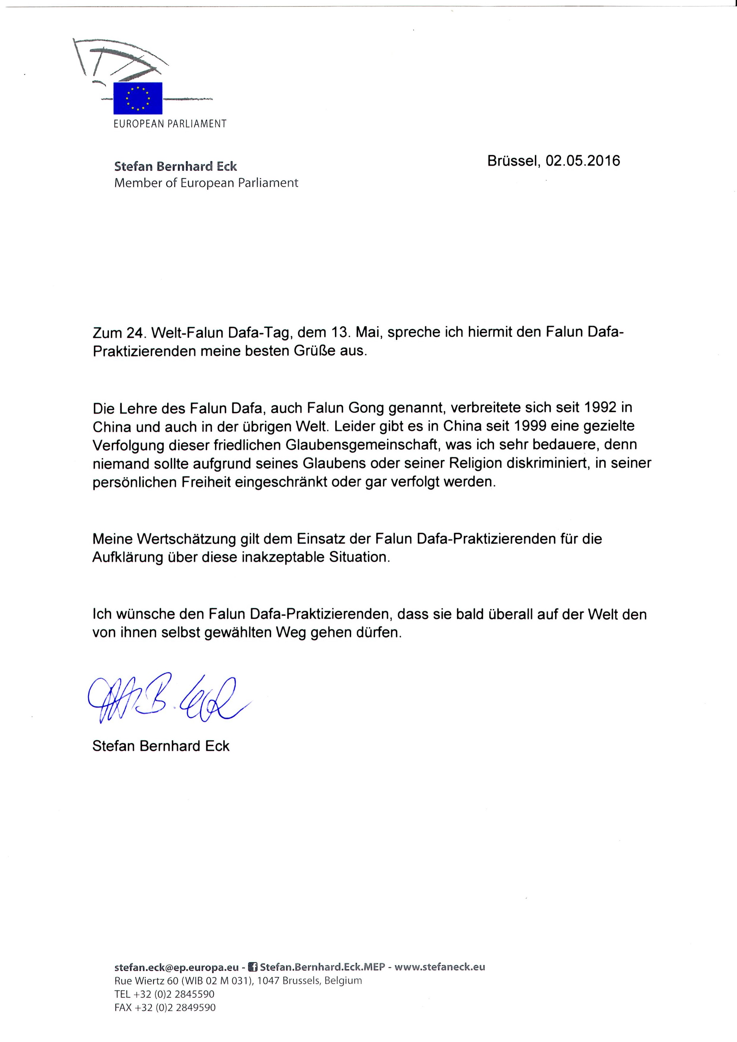 他表示:“法轮功学员非常平和,他们只是想平和地生活,他们友善地对待所有的人,我支持他们,祝福他们。”