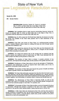 【明慧网二零一六年五月十四日】(明慧记者吴思静、唐秀明纽约采访报道)二零一六年五月十三日,为庆祝世界法轮大法日,来自世界五十多个国家的法轮功学员在纽约联合国总部对面的达格•哈玛绍广场(UN Dag Hammarskjold Plaza Park)公园集会,提醒人们,中共摘取法轮功学员器官的罪行还在进行,呼吁法办迫害元凶江泽民。六名中国大陆移民在集会上公开宣布自己退出中共党团队。