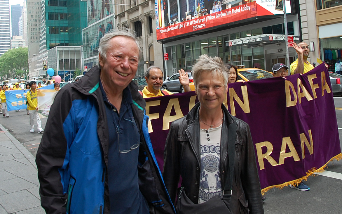来自德国的音乐艺术家Dresche先生和太太看到游行后了解了法轮功被迫害的真相。Dresche先生表示,他们二零零四年曾经去过中国,深知那里的人权没有保障。