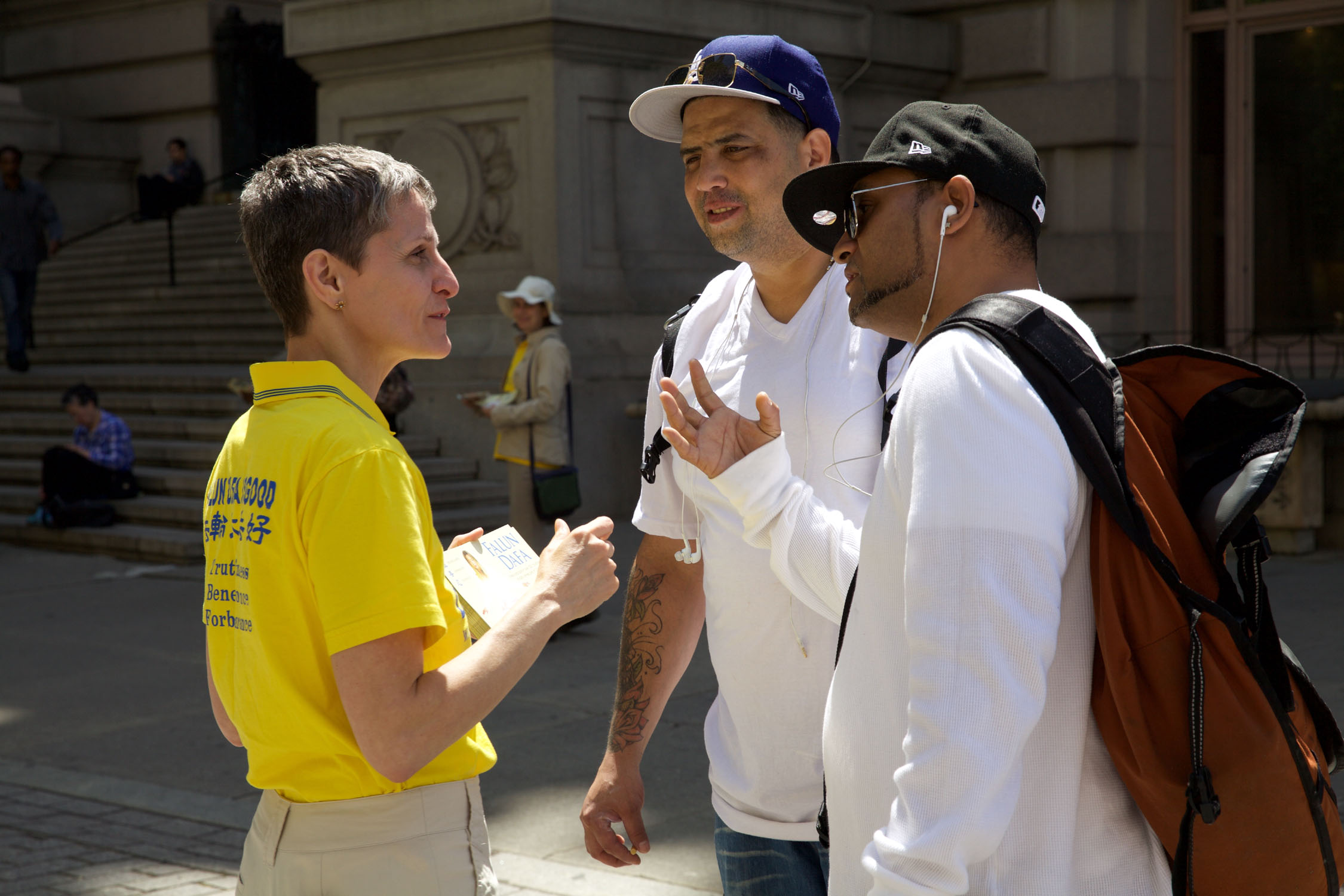 曼哈顿金融分析师 Evan Magaeniten 说他就住在法轮功学员中领馆抗议活动旁边的公寓楼中,他从窗户看到活动的场景,就下来看个究竟,并拍了一些视频与照片。“人们有自由表达他们的感情和心声。我此前没有听说过法轮功,但我知道打坐对人健康有益。刚刚看到法轮功在中国遭受迫害很难过,打坐被迫害是很荒谬的事情。政府发动迫害是因为中共政权害怕人们追随不是它们自己的任何信仰或团体,这恰恰证明了(中共)它们限制人们的自由,然而自由是任何人都应该首先享有的权利。共产独裁政权只想让人们追随他们要的东西。我刚才拍了很多照片,回去我就会贴到我的脸书上,让更多的人知道。”