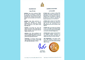 二零一六年,渥太华市长吉姆•沃森连续第六年代表市议会宣布五月十三日为“渥太华法轮大法日”。