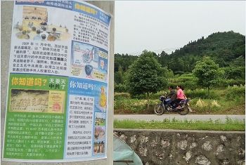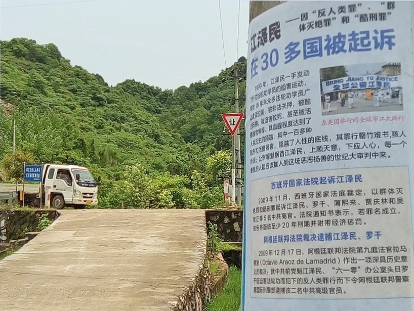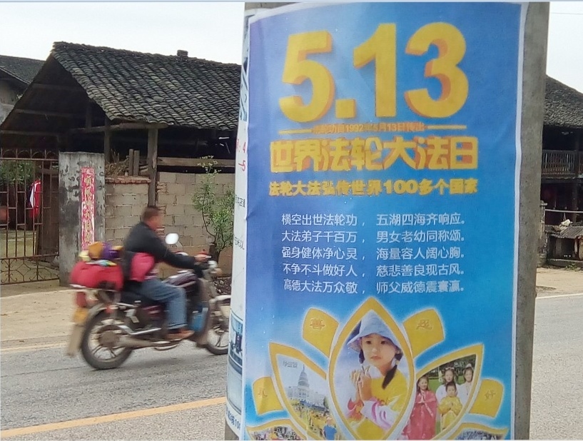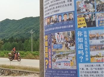 湖南怀化靖州城乡喜见法轮功真相粘贴和展板