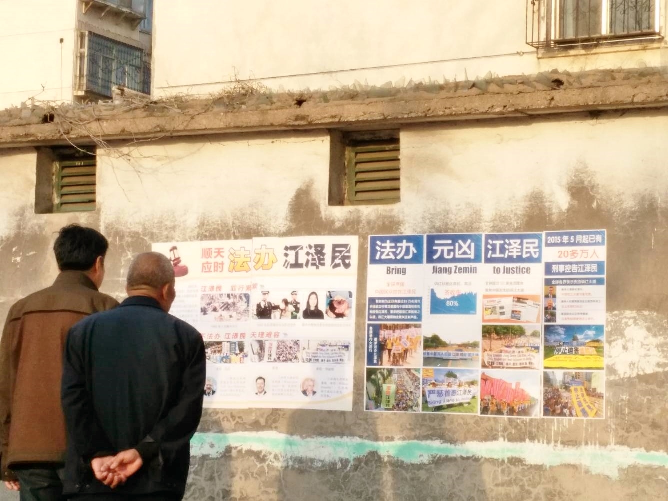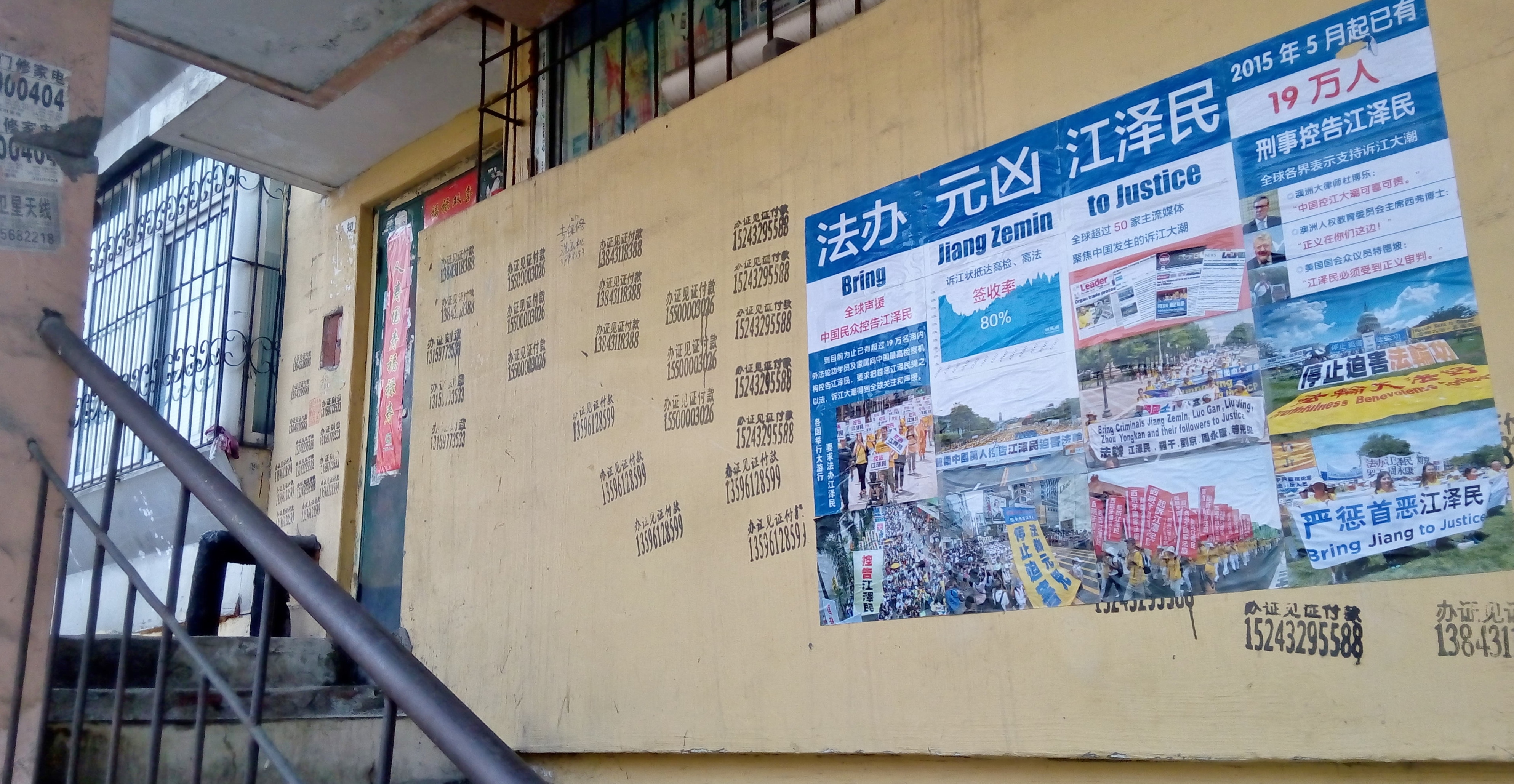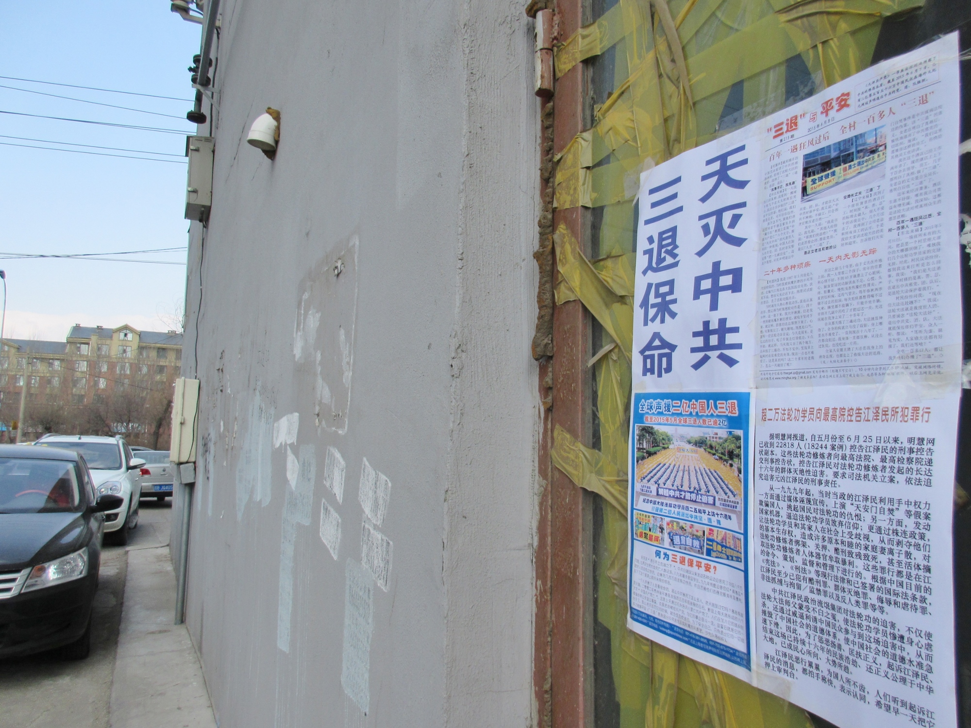 • 大陆北方某地街头巷尾皆可看到诉江真相展板