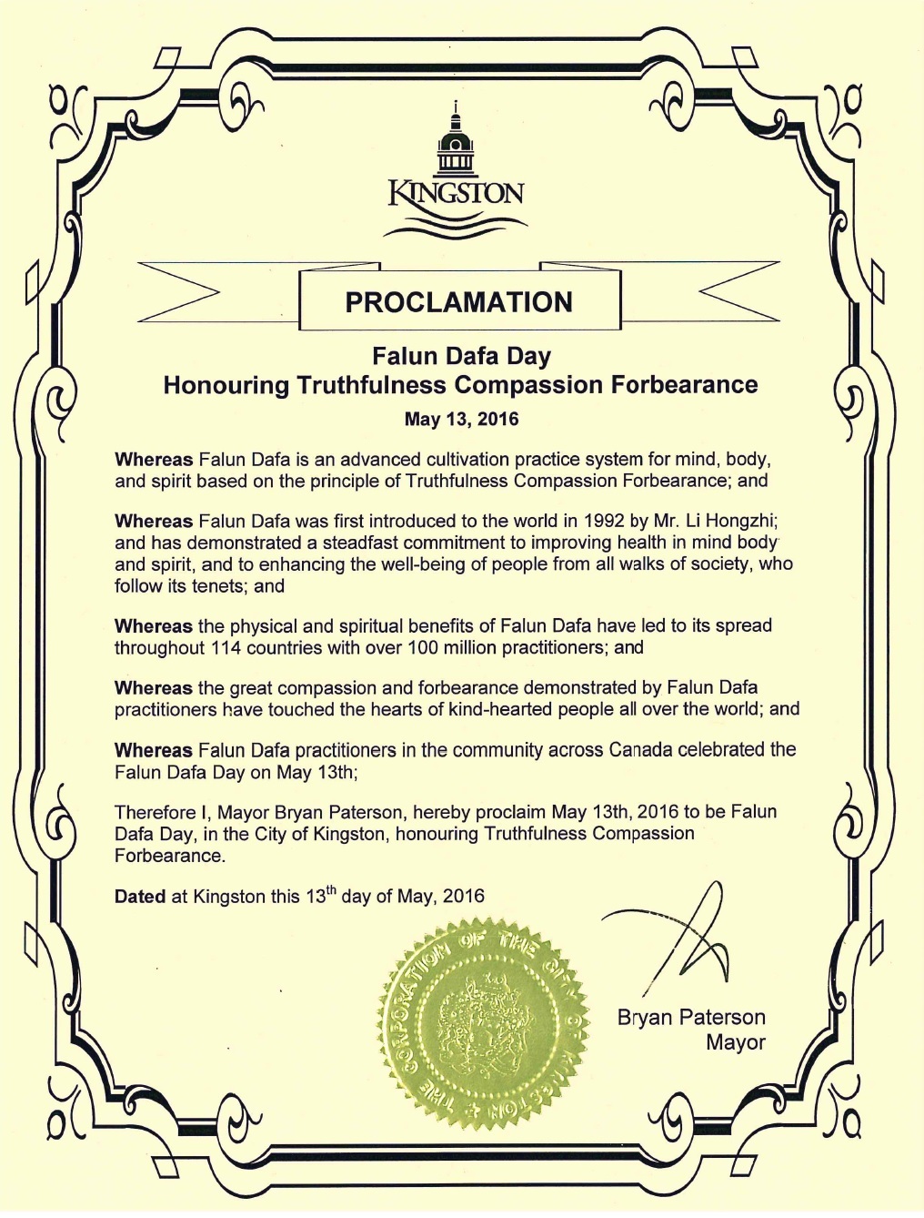![]() 加拿大金斯顿市褒奖法轮大法 |