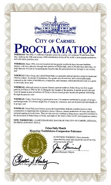 美国印第安纳州卡默尔市宣布法轮大法月