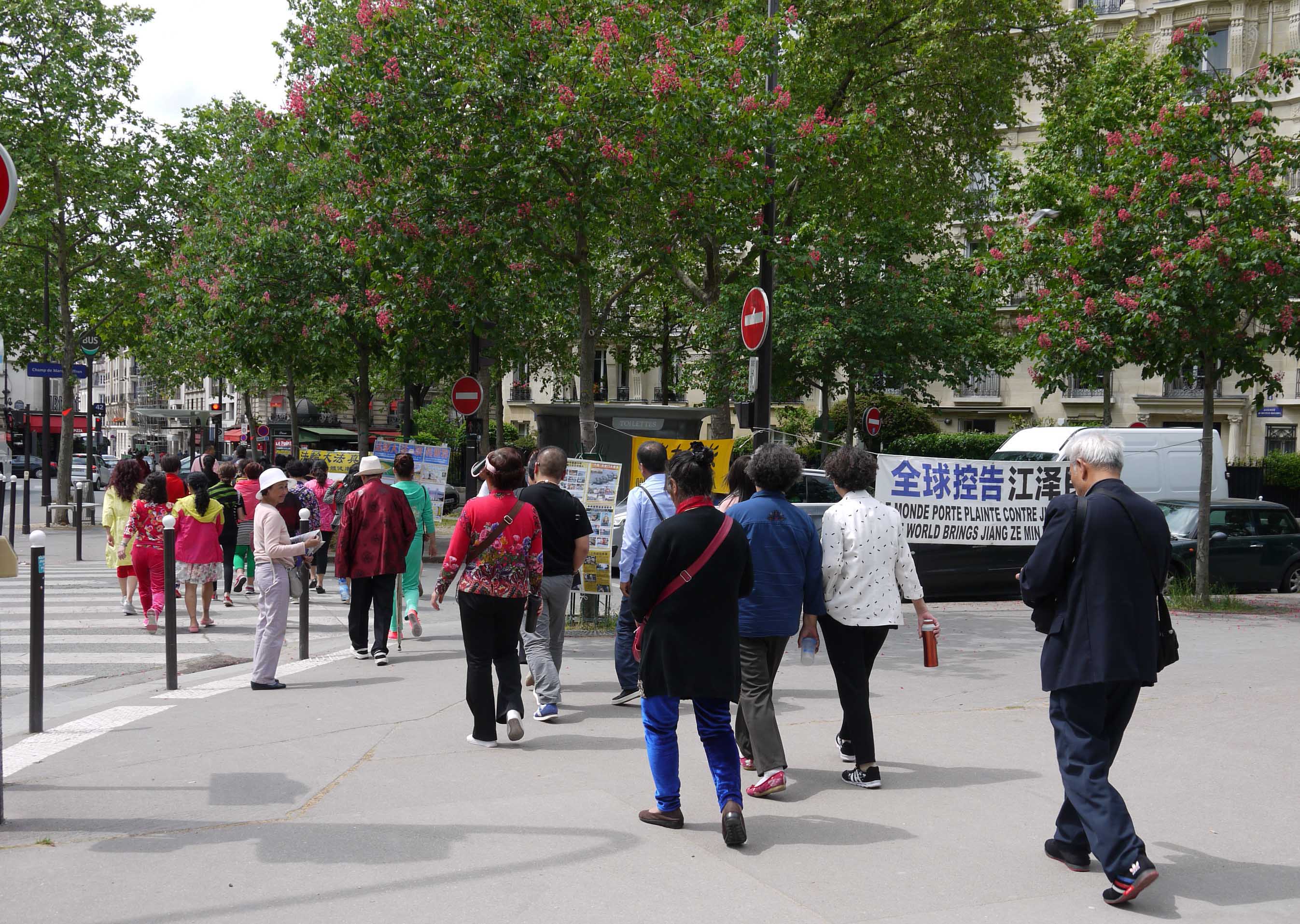 ![]() 图1-4:法轮功学员在巴黎艾菲尔铁塔下设立真相点,每天来观光的大陆游客不会错过。 |