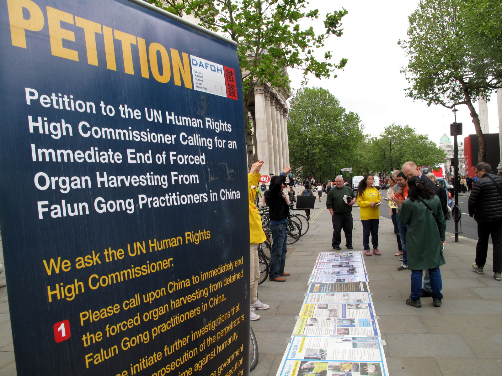 ![]() 图1-2:二零一六年五月二十一日,英国法轮功学员在位于伦敦市中心的圣马丁广场(St. Martin Place)开展讲真相活动 |