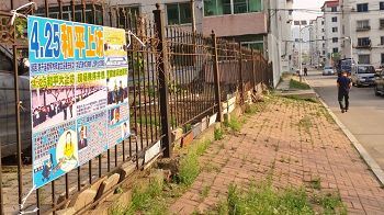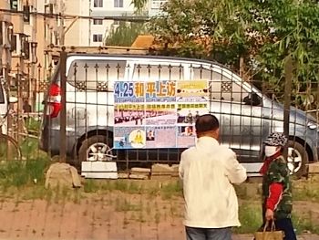 真相展板等,将法轮大法好的信息传递给当地的百姓。