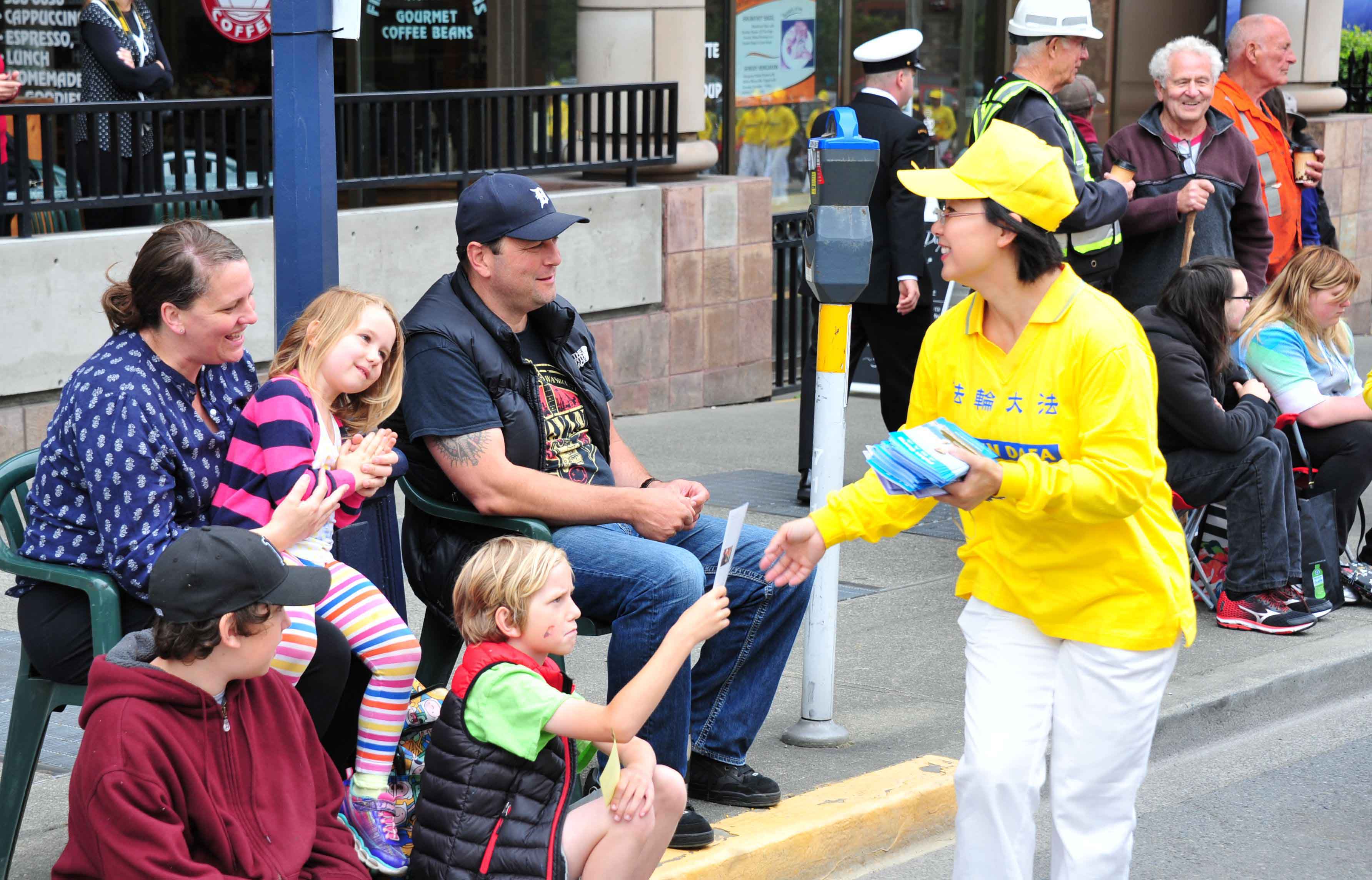 维多利亚市是加拿大西部著名旅游城市,近年有很多中国大陆游客来旅游。大陆游客郭先生看到法轮功学员游行队伍后表示大开眼界,中共抹黑法轮功的欺骗宣传不可信。大陆留学生王先生表示,法轮功游行队伍精神面貌非常好,带给人喜悦。