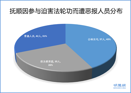 仅抚顺地区就有134人因参与迫害法轮功遭到上天的惩罚,遭恶报的人中,公检法司57人,政法委(610)系统35人,另有42名普通人。