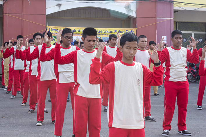 印尼皇冠学院150名师生学炼法轮功(图)