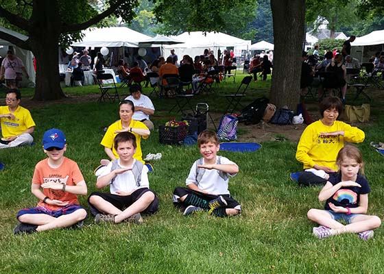 哥伦布市亚洲节 游客观看法轮功学员炼功(图)
