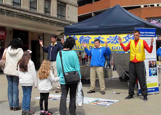 五月底英国的天气乍暖还寒。五月二十九日,星期日,在北约克郡的最大城市利兹,几个年轻人正微闭双目,缓慢而舒展地炼着一种来自东方的修炼功法,过往的人们被他们的祥和与宁静所吸引,停下来,希望了解他们在做什么。