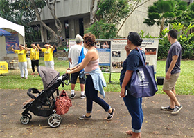 一年一度的夏威夷书展及音乐节,于四月三十日及五月一日在檀香山市举行,法轮功学员也在这里设置了展位,介绍功法,并揭露中共迫害。