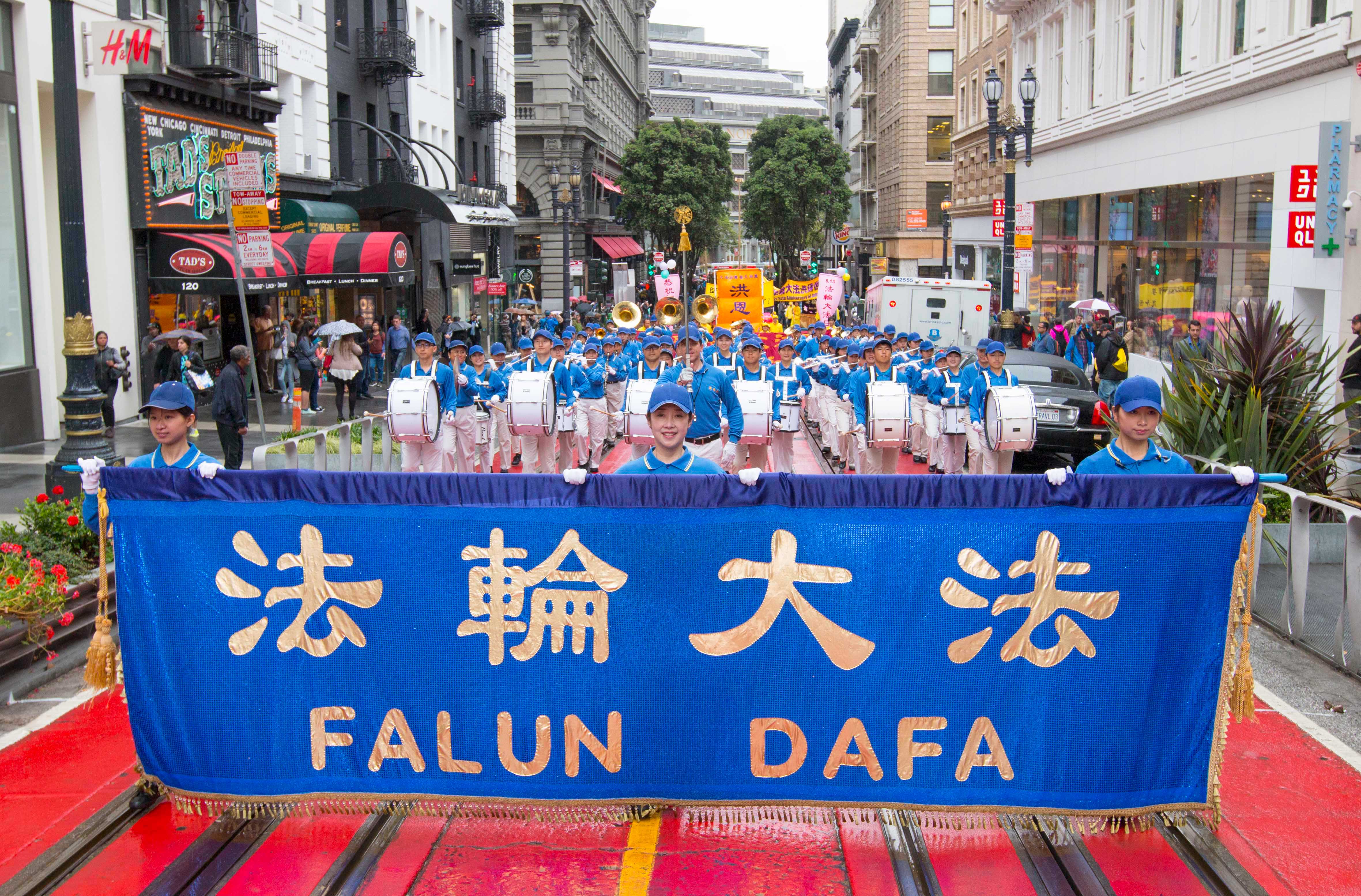 当天天空一直飘着细雨,前来为游行开路的警察Steve一边开路,一边不时提醒学员小心地上的积水。他说:“这个团体太棒了,非常平和,是我所见过的最平和的团体。我觉得旧金山人都会喜欢他们。”他并表示,希望每次都能为法轮功团体开道。