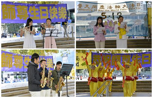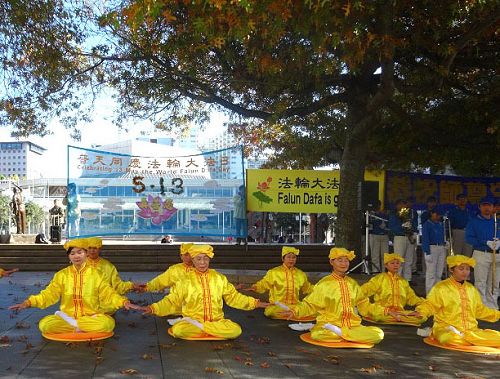 ![]() 图1-4:庆祝“五一三”,二零一六年五月七日,新西兰奥克兰法轮功学员们通过功法展示、天国乐团表演、腰鼓表演及乐器演奏等形式,表达对李洪志师父的感恩。 |