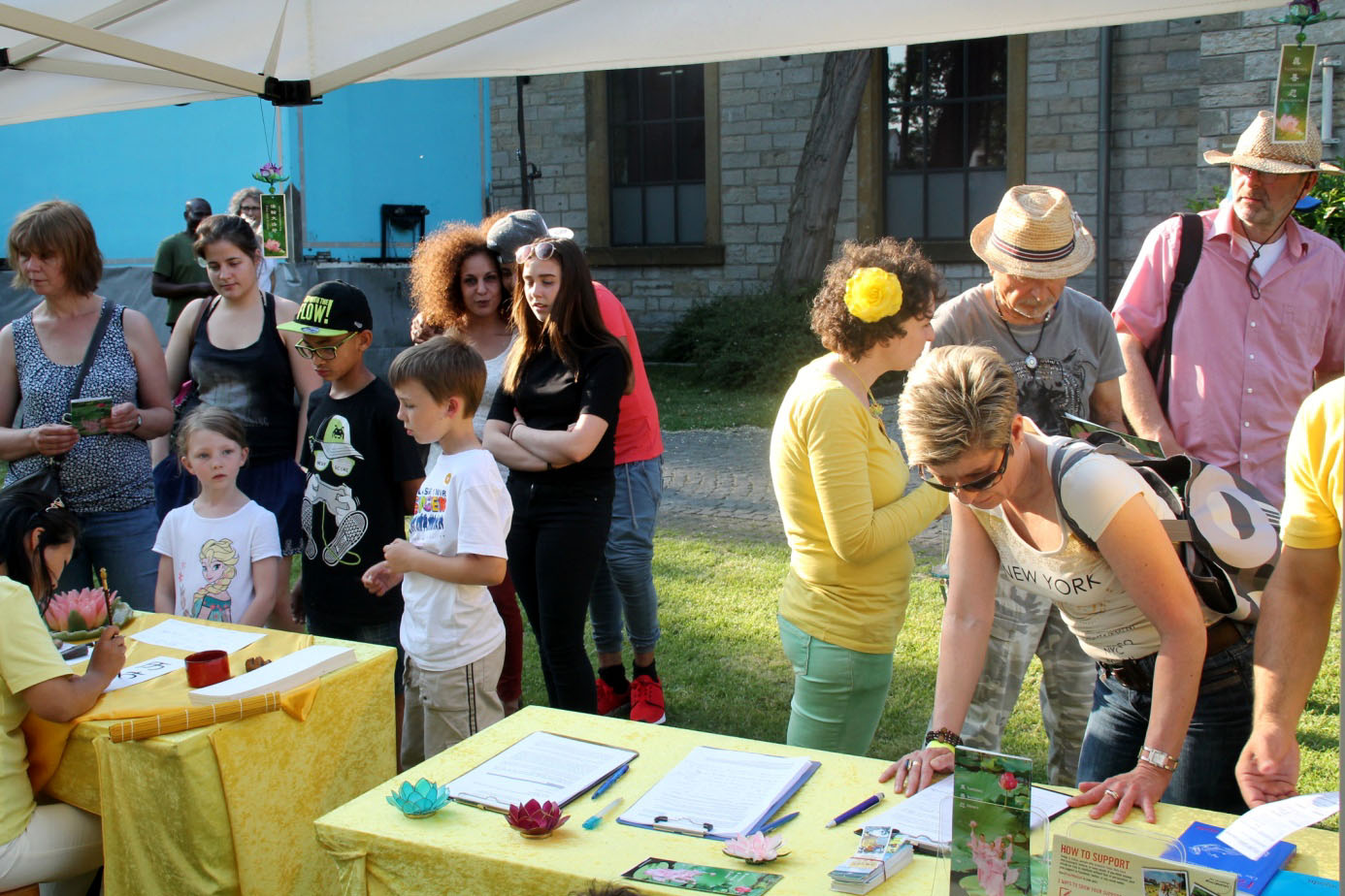 一位已经在德国生活了十多年的香港人赞叹法轮功学员坚持不懈的让人了解真相:“共产党做了太多的坏事,可惜很多大陆人被中共洗脑了。法轮功你们做得太好了。”随后他在起诉江泽民的征签表上签字。