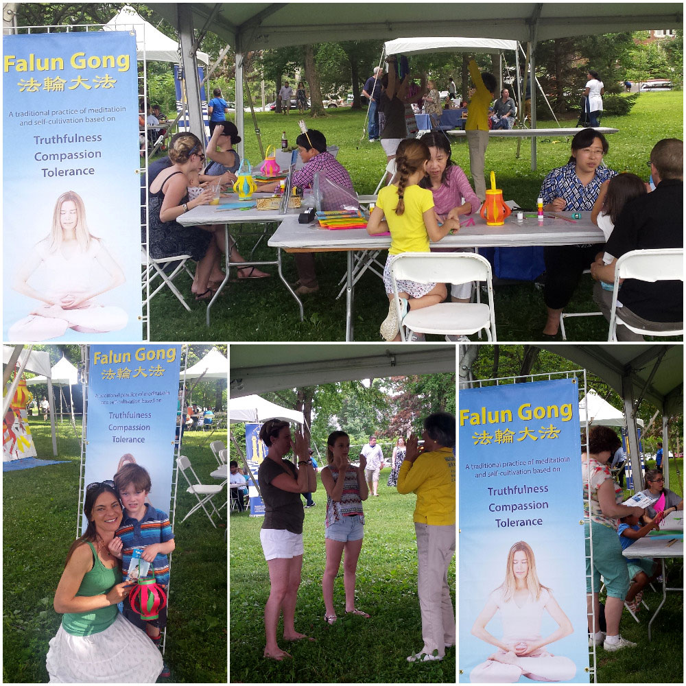 【明慧网二零一六年六月十一日】美国密苏里州的夏季热情洋溢,参加各种社区活动的人们经常欣喜地发现很多新奇美好的事物。来自东方的传统修炼功法——法轮功常常是社区活动中吸引人们的热点,不少人跃跃欲试,想要亲身体验打坐和真善忍原则带来的心灵宁静。