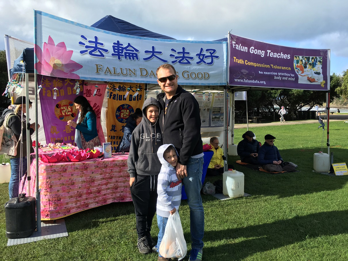【明慧网二零一六年六月十五日】(明慧记者夏纯清墨尔本报道)在位于澳大利亚维州大洋路、距离墨尔本两个多小时车程的著名旅游胜地龙恩(Lorne)小镇,二零一六年六月十一日,墨尔本的法轮功学员参加了当地举办的周末海滩市集(Lorne Foreshore Market),设立了展位,传播法轮功的真相。